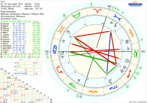 Aus einem unendlich tief empfundenen Mitgefühl (=abst. MK im Krebs) inkarnierte sich die Wesenheit Rudolf Steiner im Jahre 1861. Somit war er beim Sturz der Geister der Finsternis 18 Jahre alt. Damit war es ihm als Erwachsenen möglich, den gesamten europäischen Raum durch seine Reisen auf das Kommende vorzubereiten. Er verstarb fünf Jahre vor der Entdeckung Plutos. Trug aber bereits in seinem Geburtsradix die Insignien des kommenden Krieges in sich (AC Skorpion mit Geburtsherrscher Pluto in Konjunktion mit Mars im Stier).