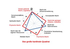 Stellt man nämlich das Schütze-Fische-Quadrat alleine auf die linke Seite, ergibt sich seine sehr bedeutsame und alles entscheidende Rolle. Gestalte ich meine Zukunft auf dem Vertrauen der allumfassenden Schöpferkraft oder schließe ich mich denjenigen Kräften an, dien in diesem Kampf immer unterliegen werden? Zweifelsohne haben sie auch ihre und ihnen ganz alleine zugeordnete spezifische Aufgabe. Diese Kräfte haben die Aufgabe, die irdische Welt ins Chaos zu leiten, „Ordo ab chao“.