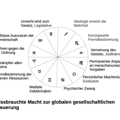 In dem Prozess des individuellen Wiederfindens der verborgenen Wahrheit (=Fische-Prinzip) wendet die Kabale das exakte Gegenmittel an, um dieses verhindern zu wollen. Die negative Ausprägung der verborgenen Wahrheit ist die Verdorbenheit, die jeden Aspekt der Wahrheit in sein Gegenteil verkehren möchte. Diese Verdorbenheit trägt aber bereits das Siegel der eigenen Verdammnis in sich. Was wir derzeit erleben, ist das verzweifelte Bemühen eines untergehenden Imperiums, das versucht zu retten, das nicht mehr zu retten ist und das auch in den vor uns liegenden Zeitaltern kaum mehr eine bemerkenswerte Rolle spielen wird. Und wenn doch, dann nur noch als ein vergangenes Beispiel dessen, was wir nicht mehr haben wollen.