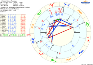 Die übereinstimmenden Planetenkonstellationen sind überwältigend. Exakt und präzise auf den Tag genau nach 100 Jahren des Todestages von R.S. treten diese astrologischen Phänome auf: